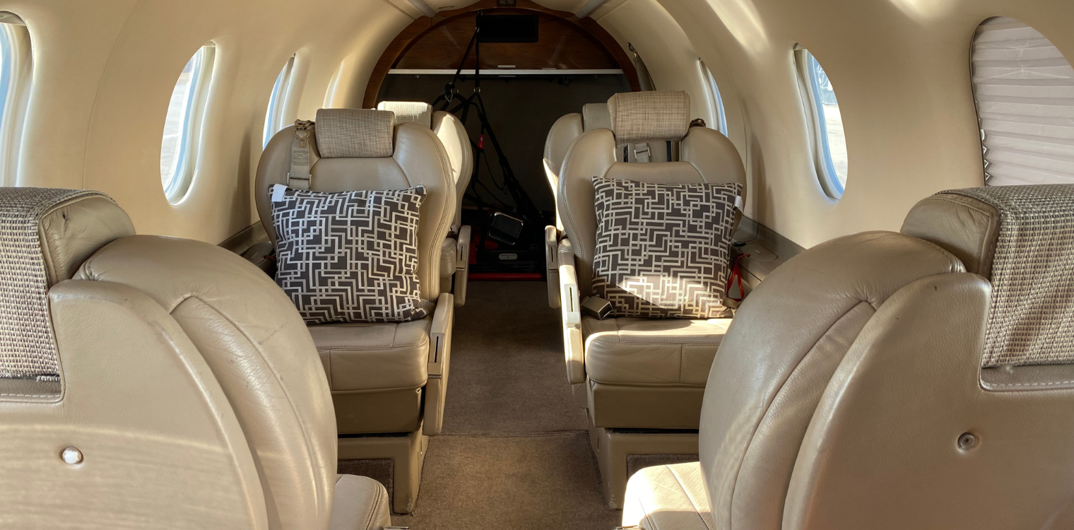 The Pilatus PC-12 offers comfortable cabin service similar to the King Air 200 with the added features of a large 4’ cargo door, Private Lavatory and improved short-field performance. This powerful single-engine turbine aircraft has great range, comfort and reliability for hard working business travelers or private comfort.